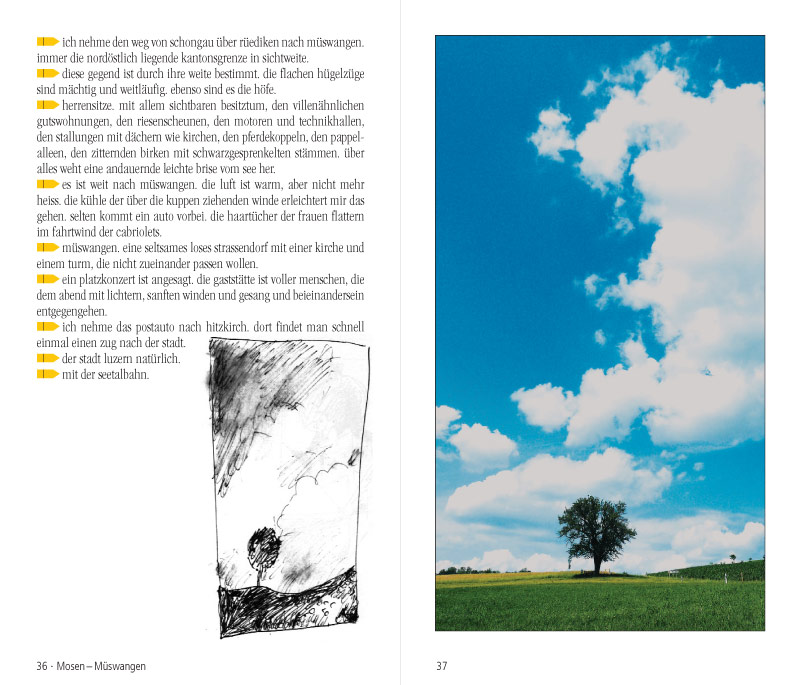 Daraus ist ein anregender Begleiter für die eigene Fantasie entstanden, um die Schönheit, Kraft und Vielfalt des Kantons Luzern zu erfahren, seine Grösse, vom Flachland über die Hügelzone bis in die Berge zu erleben, die Freude an der Bewegung, an Geduld und Ausdauer zu schätzen, das Gehen als menschliches Mass zu erfahren.